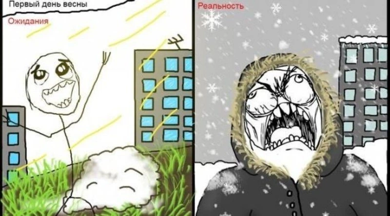 1 марта наступила долгожданная весна. Однако пока только на календаре: в России, как известно, зима без боя не сдается. В честь 1 марта собрали смешные мемы про время года, которое вообще-то должно быть теплым. Но тут уж как повезет.