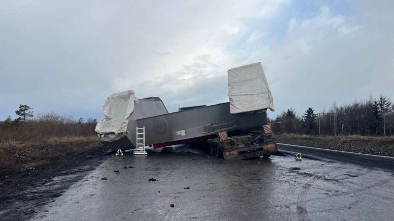 Люди в происшествии не пострадали, целы и деталь, и автотрал, уточнили авторы канала. Для того, чтобы поднять конструкцию с земли, вызвали кран.