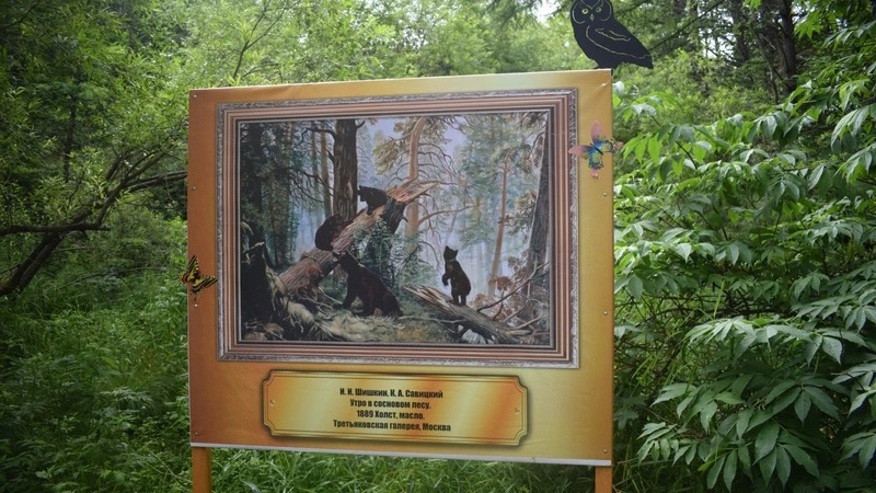 На двух стендах напечатаны репродукции картин русских художников: Ивана Ивановича Шишкина и Константина Аполлоновича Савицкого «Утро в сосновом лесу», Виктора Михайловича Васнецова «Три богатыря». На третьем стенде нанесено изображение иконы Святой Троицы, написанной в 15 веке преподобным Андреем Рублёвым, а также текст молитвы «Отче Наш...»