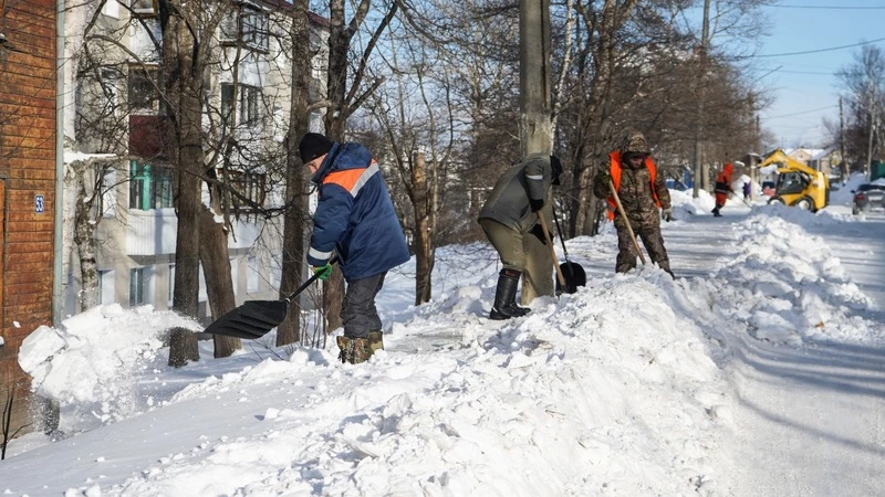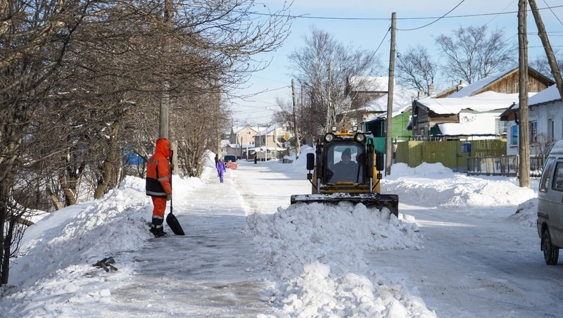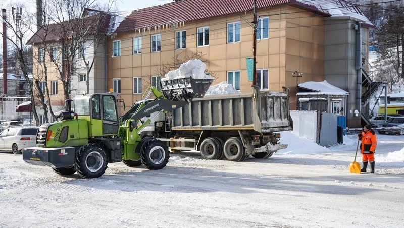 В Корсакове вывезли тысячи кубометров снега после циклона