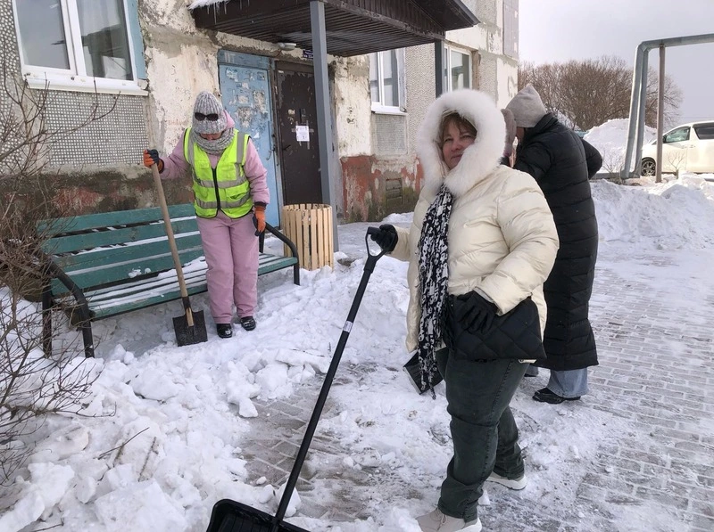 На Матросова активные жители и сотрудники управляющей компании очистили скамейки у подъездов и пробили дорожку на детскую площадку.