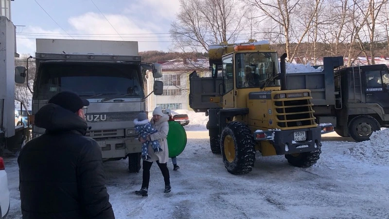 Во дворах на Нагорной рядом с ТЦ «Дельфин» работала техника: два погрузчика и два самосвала. Всё координировал депутат от партии «Единая Россия» Дмитрий Силачёв.