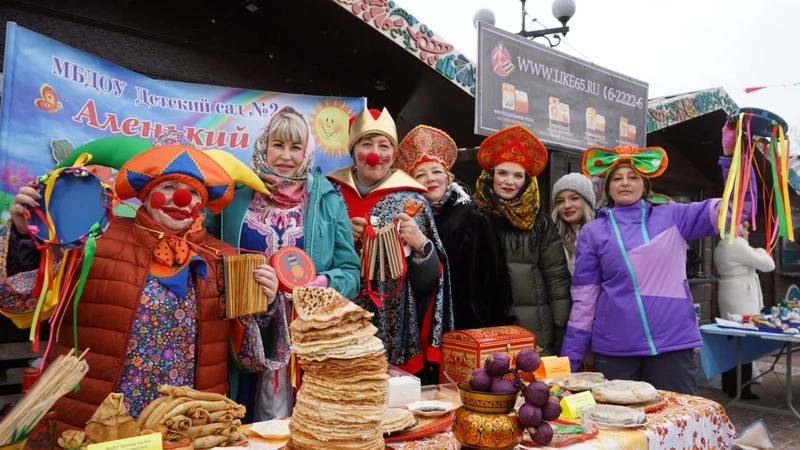 Пока дети развлекались играми, взрослые могли приобрести продукцию местных производителей — прямо на площади в это же время проходила «Сахалинская ярмарка». Рыбная, мясная, молочная продукция, кондитерские изделия, мед, орехи сухофрукты и многое другое шло нарасхват. Тут же можно было подкрепить силы только что приготовленным на огне пловом или шашлыком, попить чаю в специально установленной отдельной палатке. А на сцене один за другим сменялись артисты — солисты и творческие коллективы «Океана», поднимавшие настроение веселыми песнями. На помощь им пришли учащиеся школ. Ребята приготовили масленичные заклички, услышав которые Весна обязательно должна прийти в ближайшие дни.