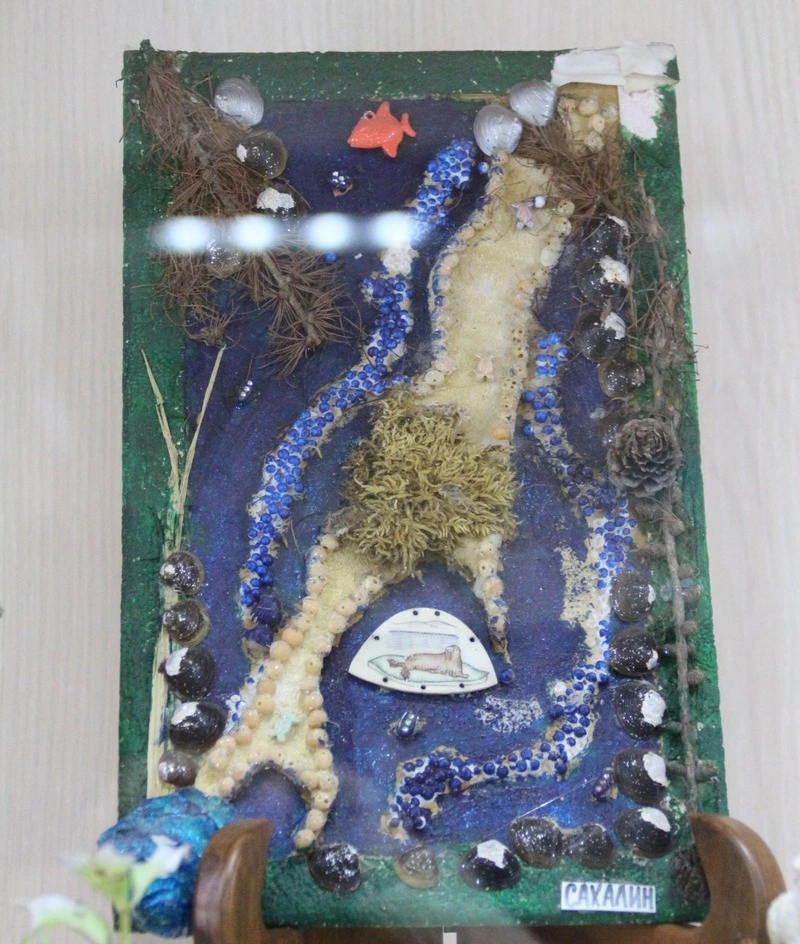 Представленные работы отражают непростую судьбу создателей, но при этом наполнены оптимизмом и верой в будущее. Еще один автор – Дмитрий Каргополов – не смог посетить выставку. Он не ходит, а его руки не держат предметы. И тем не менее, преодолевая болезнь, воплощает свои идеи в реальность. Его панно «Сахалин», композиции «Мельница», «Овечки», «Подводное царство», «Средневековая крепость», а также макет парусника «Алые паруса», как символ стремления, романтизма, надежды, поражают и доказывают, что возможности человека безграничны.